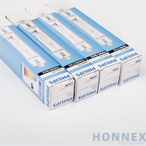 Range of double-ended, compact, high-efficiency, discharge lamps with a stable color over lifetime and a crisp, sparkling light
